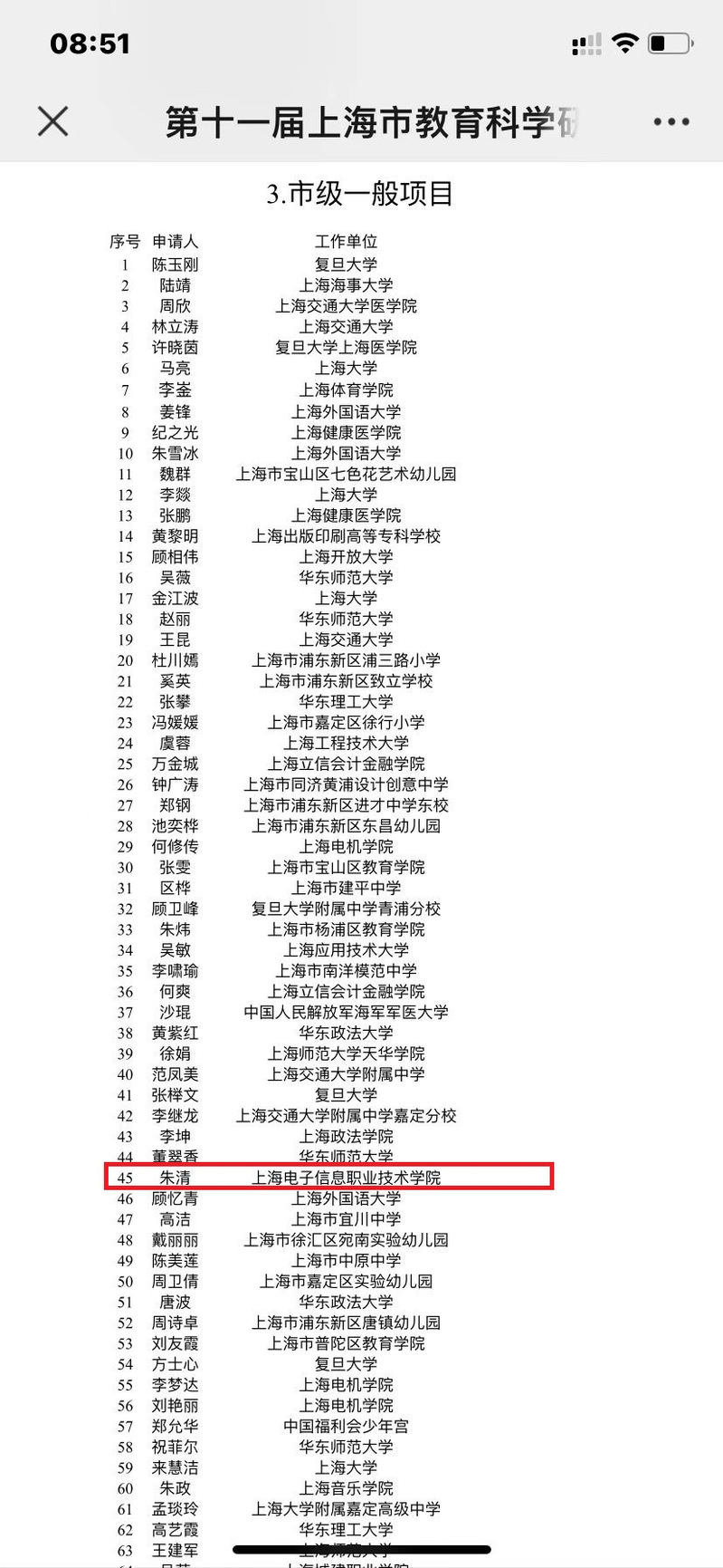 近日,2022 年度上海市教育科学研究项目立项名单公布,上海电子信息职业技术学院公共基础学院书记朱清老师主持的《党建引领高职院校“三寓三式”课程思政建设路径的研究》项目获批立项。