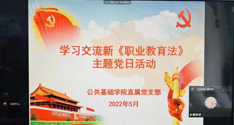 十三届全国人大常委会第三十四次会议4月20日表决通过新修订的《职业教育法》,2022年5月1日起施行。这是职业教育法制定近26年来的首次修订。5月21日下午,公共基础学院直属党支部开展主题党日活动,集中学习交流了新《职业教育法》,学校副校长窦争妍及支部全体党员同志参加活动,活动由支部副书记朱清主持。