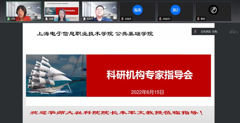615日,公共基础学院“高等职业教育人文素质教育研究中心”研究机构专家指导会“云端”召开。本次会议邀请了华东师范大学社科院院长朱军文教授对研究机构名称、目标、方向、内容进行专门指导,旨在使学院科研机构研究目标和任务更加明确,机构的研究方向更加凝练,同时也使学院教师的教育科研能力进一步提升,教师专业发展进一步促进。活动由公共基础学院学院直属党支部书记朱清老师主持。