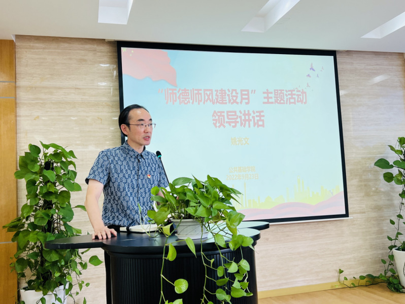 会议最后,姚光文院长作总结讲话。他从“爱心”和“责任心”两方面对全体教师提出要求,希望老师们能够在学习和生活中帮助学生,理解学生,成为学生的人生导师;要对国家、学校、学院、学生、同事、家庭有高度的责任心,共同严守师德底线,坚守育人初心,提高师德修养,增强师德建设责任感,做无愧于时代,无愧于人民的好老师,为学校创建职业本科贡献力量,以实际行动迎接党的二十大胜利召开。
