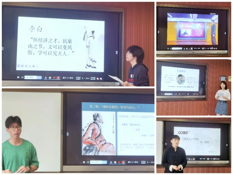 比赛现场,有的选手激情朗诵《永遇乐・京口北固亭怀古》,借辛弃疾的满腔热忱表达当代青年的爱国热情;有的选手娓娓道来《春江花月夜》的生命意识,感悟自然中蕴含的人生态度;有的选手伴随着音乐和图片,结合自身感受,讲述《虞美人・听雨》,体察国家和个体的紧密联系;还有的选手知人论世,以李清照的生平际遇观照《声声慢》的凄苦哀愁,赏析其独特的艺术表达……