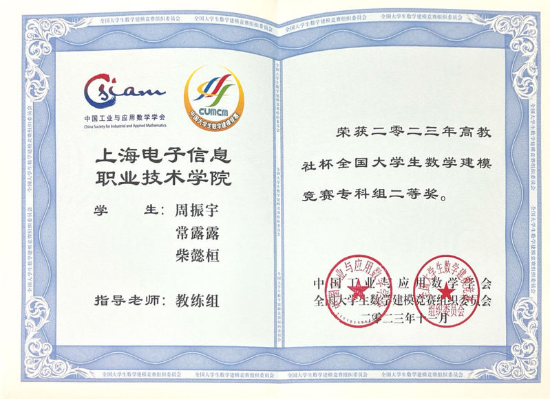 日前,全国大学生数学建模大赛颁奖大会在复旦大学礼堂隆重举行。我校学生在此次大赛中成绩喜人、表现出色,荣获全国二等奖2项,上海市一等奖2项、二等奖3项、三等奖1项。据了解,获奖等级、获奖数量均居上海市职业院校第一。
