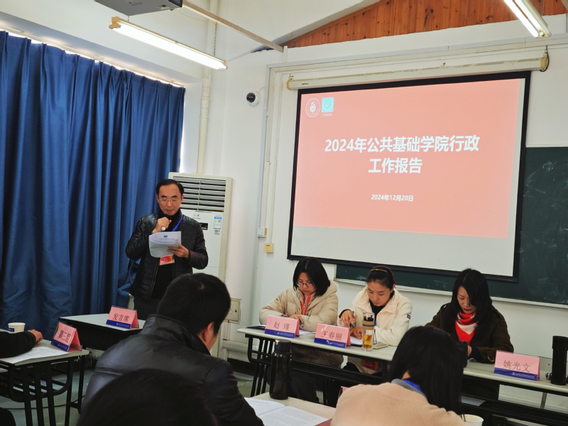 随后,学院院长姚光文作2024年公共基础学院行政工作报告。报告详细阐述了2024年的工作情况,包括课程建设情况、实训基地建设情况、科研以及社会服务情况等多个方面的具体情况。报告还明确提出了当下的困难以及学院在未来一年中的发展目标、主要任务和保障措施,为全体教职工指明了奋斗方向。