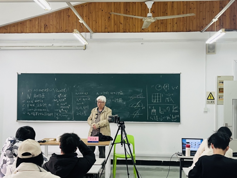 文教授进一步将数学理论与现实生活相结合,通过“1+1在什么时候等于2?”等问题,引申出Peano公理的内容,由浅入深的说明数学思维在解决实际问题中的普适价值。他强调:“数学不仅是公式与计算,更是一种“如何思考”的方法论”。他鼓励在场学生以“问题驱动”的方式训练思维,学会将生活现象抽象为数学模型,从而提升解决问题的能力。